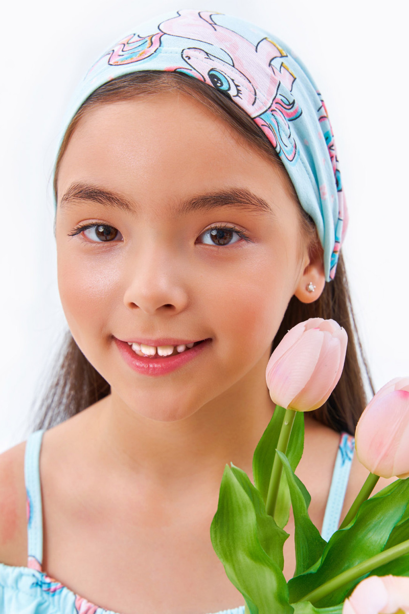 Стильная, яркая косынка для девочек. Встроенная резинка в изделия позволяет косынке прочно держаться на голове. Незаменима в жаркие летние дни.