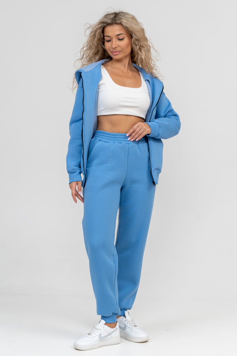 Модный женский костюм выполнен из качественного футера 3-нитки с начёсом, который обладает необыкновенной мягкостью, натуральностью, гипоаллергенностью (не раздражает кожные покровы и не провоцирует аллергическую реакцию), гигроскопичностью (костюм из футера с начесом вбирает и удерживает влагу в волокнах), износостойкостью (полотно отличается повышенной прочностью, устойчиво к повреждениям) и формоустойчивостью (при правильном уходе и стирке 30-40 °С), и обеспечивает максимальное удобство и комфорт при носке. Костюм состоит из современной "zip hoodi" свободного силуэта, которую дополняет: рукав с актуальной сейчас спущенной линией плеча, удобные карманы кенгуру и манжеты. Молния выполнена из качественных пластиковых зубьев закрепленных на прочной тесьме, что обеспечивает плавное скольжение бегунка. А также удобные брюки, которые дополнены вместительными боковыми карманами, поясом выполненным на специализированной поясной машине и манжетами выполненными из качественного кашкорсе. Длина рукава указана от точки